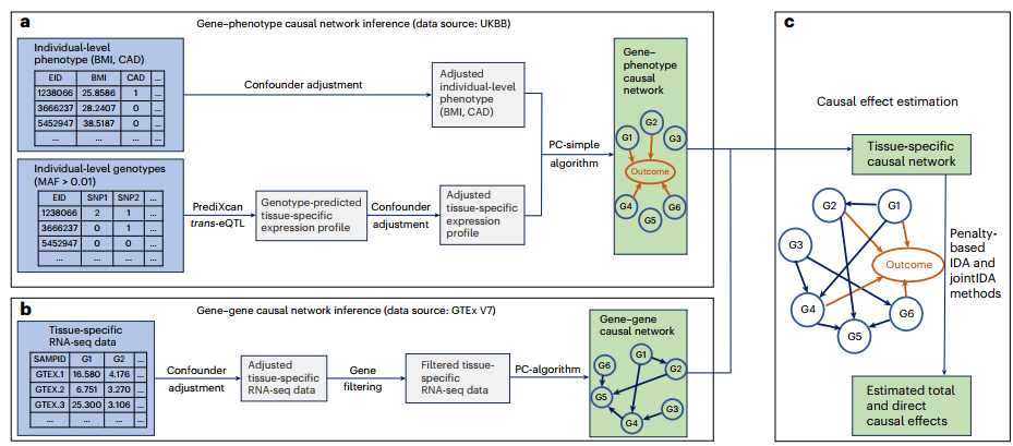 本文提出了一种新的分析框架 Bayesian Network GWAS (BN-GWAS),结合了贝叶斯网络建模和因果效应估计方法(如 MR、IDA/jointIDA),旨在系统性构建基因–基因–疾病因果网络,进而量化基因的直接效应、间接效应以及联合效应。