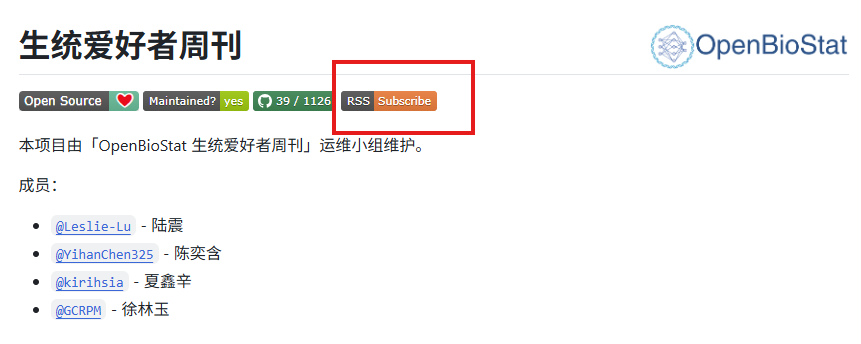 - 通过《生统爱好者周刊》的 github 仓库及 release 页面:openbiostat/biostat-weekly/releases