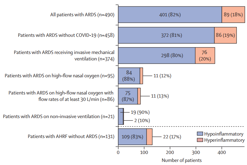 PHIND研究是一项多中心前瞻性队列研究,首次实现了急性呼吸窘迫综合征(ARDS)炎症亚表型的床旁实时识别。研究纳入512例急性呼吸衰竭患者,利用IL-6、TNFR1及碳酸氢盐水平构建简化模型,在约1小时内完成高炎症型与低炎症型分型。结果显示,高炎症亚表型占18%,其60天死亡率显著高于低炎症型(51% vs 28%,OR=2.7),且机械通气时间、ICU住院时间均显著延长。值得注意的是,两亚型在传统氧合指标上无显著差异,提示生物学分型优于单纯临床指标。本研究证实炎症亚表型具有重要预后价值,并为ARDS精准医学和分层治疗策略提供了关键技术基础。