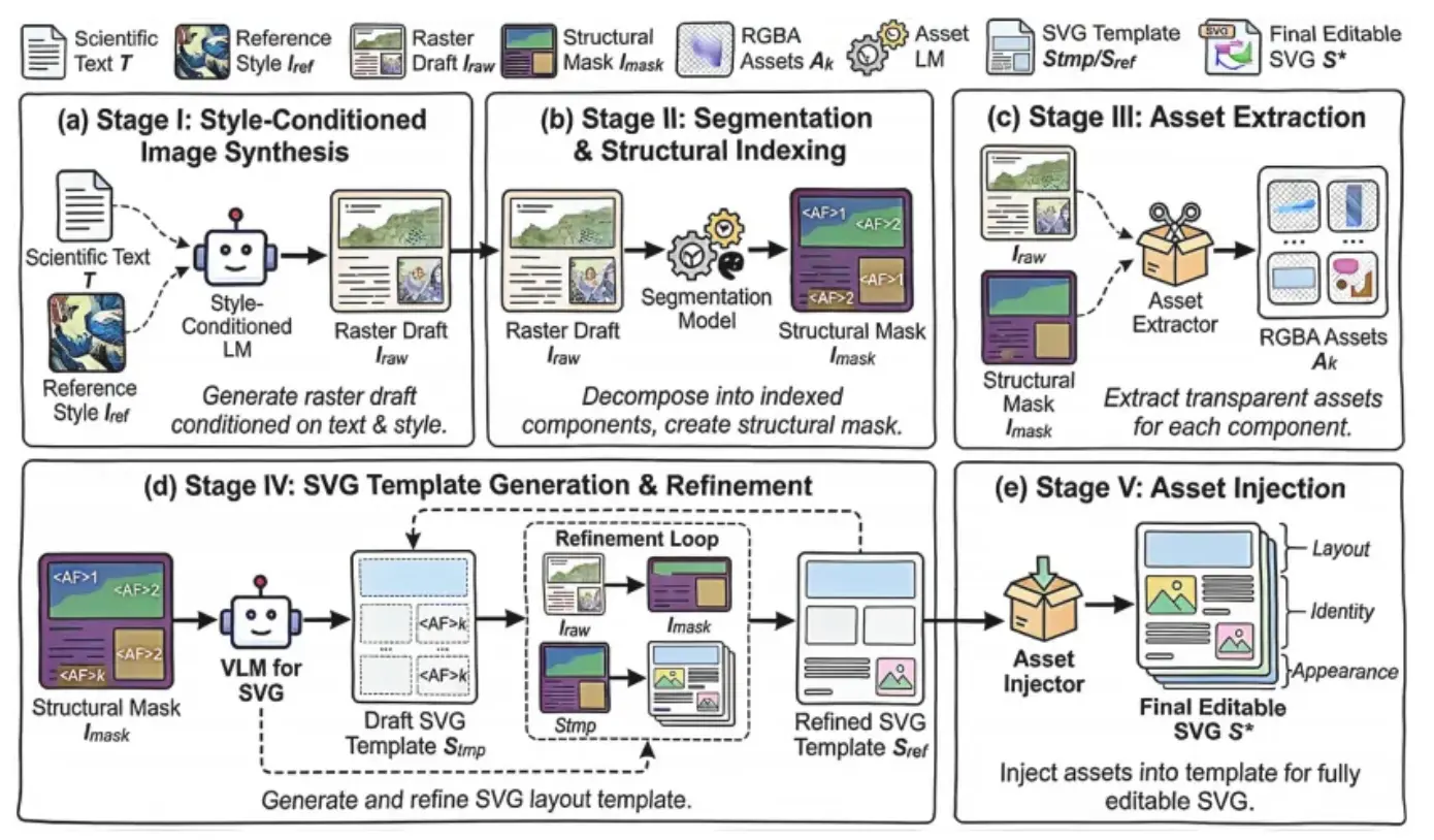 西湖大学团队开源的 AutoFigure-Edit 是一款首创的 AI 论文矢量绘图工具,它打破了传统 AI 生图“不可编辑”的局限,能够将长篇学术文本直接转化为可直接拖拽、改字、换色的 SVG 矢量图。该系统利用 SAM3 技术智能分割图像组件,并支持通过上传参考图实现一键风格迁移(如适配 Nature 风格),其核心代码与环境已在 GitHub(ResearAI/AutoFigure-Edit)完全开源,并提供在线体验网站(deepscientist.cc)。